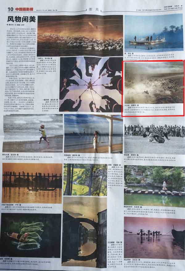 九江摄影网讯(木力)近日,中国摄影家协会主办的主流物刊《中国摄影》杂志和《中国摄影报》陆续刊发了九江会员摄影作品。 2014年第11期《中国摄影》杂志“光影艺苑”栏目中刊登了夏文川与李劼的作品《天涯牧人》和《神秘的圆佛殿》。2014年11月14日《中国摄影报》第十版刊登了疏隶书作品《大迁徙》。夏文川为九江市国税局作者,李劼和疏隶书为彭泽县作者,三人均为江西省摄影家协会会员。至此,我九江协会多位会员在国家级摄影报刊发表作品,取得了骄人的成绩。