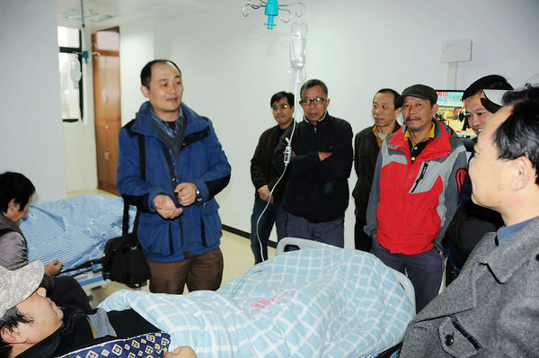 九江摄影网讯(江南)11月29日上午,九江市摄影家协会主席宋小勇、副秘书长沈双武和九江摄影别动队的队员们来到市第三人民医院住院部,看望和慰问市摄协理事田园。大家祝愿他早日康复,尽快回到摄友的活动中来,为九江摄影事业作出更大的贡献。 田园近来因突患急性胰腺炎处于治疗阶段。