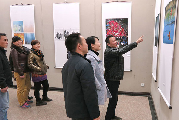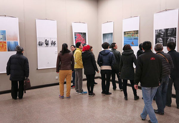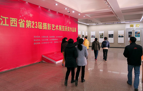 九江摄影网讯(木力)2015年2月1—15日,江西省第23届摄影艺术展览获奖作品展在江西省文联展览中心举行。 由江西省文联、江西省摄影家协会、中共九江市委宣传部主办,九江市文联、九江市摄影家协会、中共庐山区委宣传部承办的九江农村信用社(农商银行)·江西省第23届摄影艺术展览是代表江西省摄影艺术最高级别的展览。本届展览得到了全省各设区市摄协与行业团体会员单位的积极组织和全省广大摄影人的踊跃投稿,共收到22个团体会员单位、近1600名作者选送的2.6万多幅(组)作品,参与面之广、参赛作品之多为历次届展之最。 本次届展按照“突出本土、鼓励创新、题材多样、发现新人、兼顾平衡”的原则,进行严格认真、规范公正的评选,经过2014年4月27—29日的初评、6月5日的复评、7月13日的终评,评委会共评选出社会生活纪录类(A类)、自然风光纪录类(B类)、社会生活艺术类(C类)、自然风光艺术类(D类)四类入选作品500幅(组),其中:金奖8幅、银奖16幅、铜奖40幅、优秀奖160幅。2014年11月16日—23日,在九江市庐山区南山公园展厅隆重举行了江西省第23届摄影艺术展览。 应广大影友要求,江西省摄协特在南昌此次获奖作品展。本次展览的224幅获奖作品,全部由金像集团采取高档绢丝微喷挂轴制作,形式新颖,美观大方,给人耳目一新之感,得到了广大观众及摄影家的欢迎和称赞。