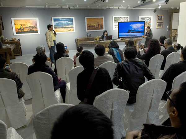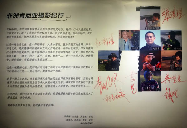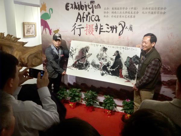 九江摄影网讯(宋小勇)1月24日至31日,由美国摄影学会(中国)、江西省摄影家协会主办,湖南工业大学校友总会、九江市摄影家协会协办,朴风堂原木艺术家居承办的“行摄非洲8人展”在广东番禺朴风堂原术艺术酒店举行。广州军区空军孙庆礼将军,广州市委宣传部原常务副部长李哲夫、美国摄影学会(中国)主席邓大端、江西省摄影家协会常务理事燕平,江西省摄影家协会常务理事、九江市摄影家协会主席宋小勇等出席开幕式或观看展览。 2014年8月,正逢埃博拉病毒在西非蔓延,在中国摄影家协会会员、九江市摄影家协会副秘书长张项理的发起下,张项理、杜新隆、吴登采、常远、袁海东、林新斌、陶坚、袁艺一行8人(4人是江西的作者,其中张项理、杜新隆、林新斌为九江作者)背起行囊,飞往肯尼亚,踏上了东非这片神秘的土地。在火热的赤道,20天和行程,他们乘坐吉普车在一群群狮子、大象中穿行,置身于数万头角马、羚羊、斑马之中;感受博格利亚湖数百万只火烈鸟组成一片粉红色湖岸;惊叹马赛马拉大草原美丽的优美落日;聆听优雅的长颈鹿在身前喃喃私语;直面马赛儿童清澈却充满好奇的瞳孔、马赛男人黝黑瘦削的脸庞和修长强悍的身型…… 展览共展出8位摄影家在非洲创作的作品100余幅,并得到同行及观众的认可,吸引南方航空《空中之旅》等多家媒体前来采访。 张项理、林新斌还在展览期间进行了专题讲座。