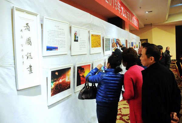 )3月15日,由中国摄影家协会会员、中国艺术摄影学会会员、江西省摄影家协会理事、江西生态摄影研究会会员、九江市摄影家协会副主席、摄影艺术创作委员会主任罗匡龙编著,江西美术出版社出版的《看图说画》摄影作品集首发式暨摄影作品展座谈会在九江市金誉国际大酒店举办,现场展出了罗匡龙先生的代表作品60幅。