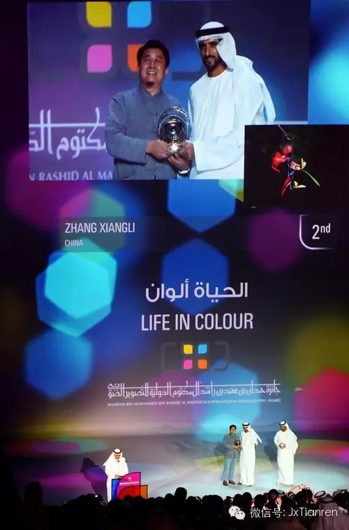 新华网迪拜3月16日电 总奖金达40万美元的第四届迪拜哈姆丹国际摄影大赛16日晚在迪拜国际金融中心揭晓,来自中国的摄影师获得3个单项奖,赛会大奖被印度摄影师安拉格·库玛尔夺得。 本届大赛分为普通组、黑白人像组、夜景组和生活色彩组4个组别,主题是“彩色生活”。大赛吸引了来自166个国家和地区的3万多名参赛者,参赛作品超过6万幅。 当晚,印度摄影师库玛尔拍摄的反映印度洒红节盛况的作品获得赛会大奖,并获得12万美元奖金。九江市摄影家协会副秘书长张项理拍摄的鸟类动态图获生活色彩组第二名,获得2万美元的奖金。 哈姆丹国际摄影大赛由迪拜王储哈姆丹于2011年发起,以其名字命名并得到其大力赞助,现已迅速发展成为国际上著名的摄影大赛之一。哈姆丹摄影赛不收取任何费用,只需提交作品即可参加,奖金规模已达到国际同等竞赛的最高水平。