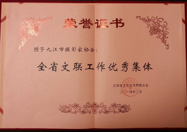 9、九江市摄协获得“全省文联工作优秀集体”称号