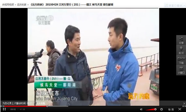 链接地址:《江河万里行》第251集 赣江 候鸟天堂 爱在鄱湖 20150429 http://tv.cntv.cn/video/C22432/d2b6e3b5214e44529ed30714c322ac4e